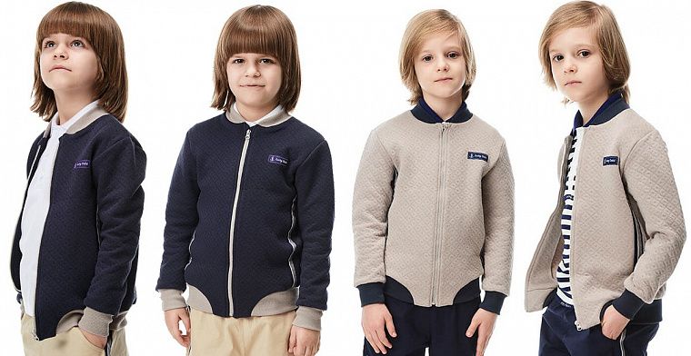 Функциональной особенностью куртки-бомбера является прочная молния с ограничителем, защищающим нежную кожу шеи ребёнка. В коллекции «Круиз» представлены модели в тёмно-сером и бежевом цвете с контрастными элементами и широкими лампасами по бокам.