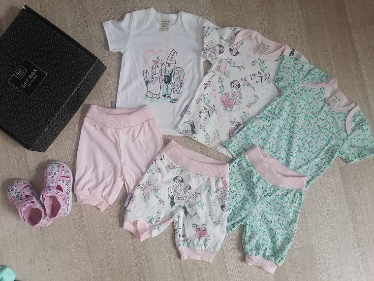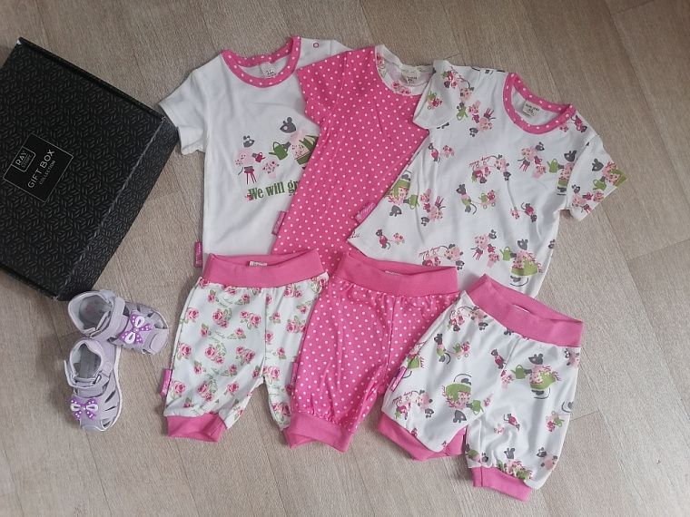 Младшей дочери ещё нет и двух лет, она активно исследует окружающий мир, участвует во всех домашних делах. Девочка любит гулять на детских площадках, копаться в песке, играть с водой, и порой за день её приходится переодевать по многу раз. Кроме того, в детский сад тоже нужно несколько комплектов одежды. Поэтому к выбору обновок к лету я подошла очень тщательно.