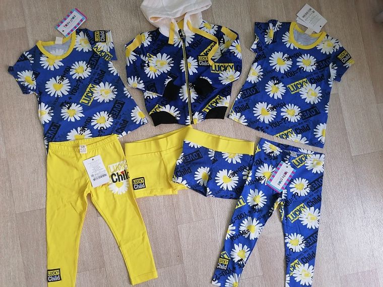 Это наши фавориты уже давно. Дочка в футболках и лосинах ходит в садик, вещи очень много раз стирались, ткань не вытягивается, не выцветает, не скатывается. Расцветка и рисунок яркие, летние. Больше всего нравится в этой коллекции, что одежда с принтом ромашки не маркая, актуальна для активных малышей.