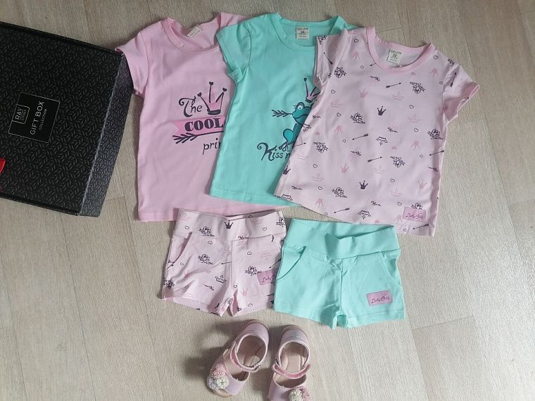 Одежда bp этой коллекции очень милых девчачьих расцветок. Ткань мягкая, приятная к телу, немного тянется. На шортах широкая мягкая резинка, а на футболках кнопочки на горловине, чтобы было удобно и быстро одевать. Шорты и футболки хорошо сочетаются между собой. Платье в горошек слегка приталено, смотрится по-летнему лёгким.