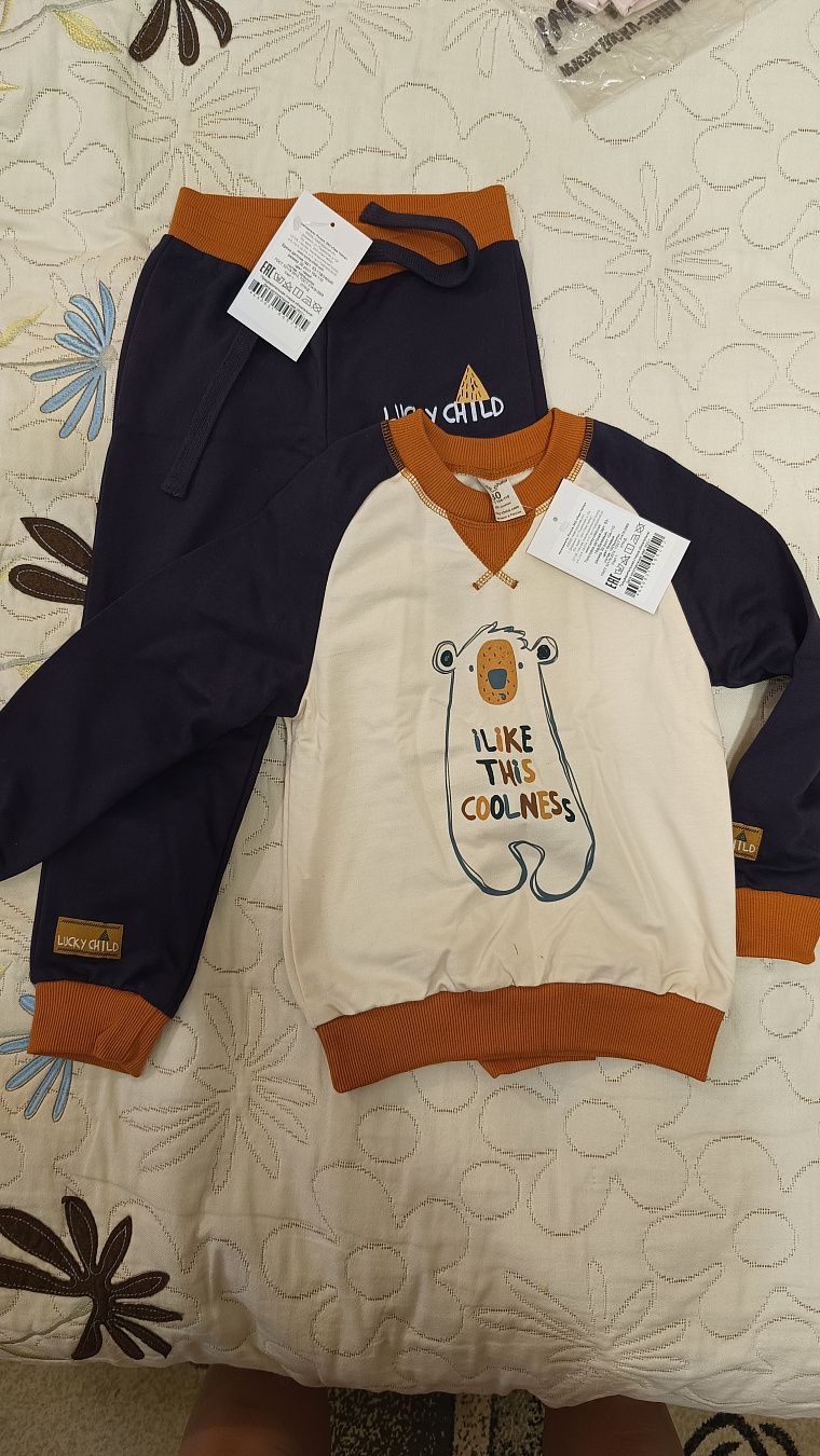 Осталось к ним по шапочке приобрести, в цвет штанов, пусть не только сынишка будет модным, но и дочурка. А если успеем, ещё и одинаковые костюмы с шапками для этих красавцев купим и обязательно похвастаемся фото.