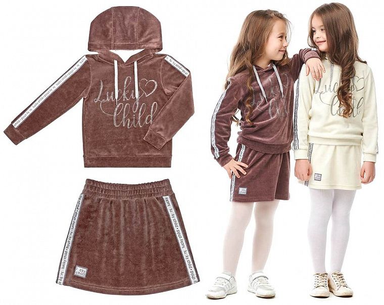 З агадочные переливы света, насыщенные тона и лаконичный крой — всё это новая коллекция для девочек «Велюр» от Lucky Child. Мы разработали стильные платья и костюмы из мягкого хлопкового велюра в сдержанных благородных цветах.