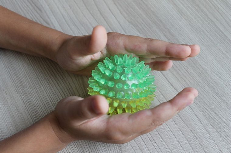 Это колючие мячики с металлическими колечками внутри. Ими легко пользоваться, они продаются в ортопедических салонах и стоят недорого. На руках находится множество биологических точек, и при прокатывании Су-Джок между ладонями происходит стимуляции этих точек. Металлические колечки надеваются и снимаются на каждый пальчик. Такой массаж ребёнок может делать самостоятельно под присмотром взрослого. Здесь не страшно ошибиться: любое действие с «ёжиками» принесёт пользу. Вместо Су-Джок можно воспользоваться дарами природы: шишки, каштаны, орехи. Подойдут также любые колючие мячики, например, для стиральной машинки.