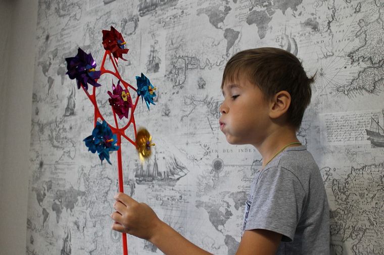- дуть на игрушечный флюгер/ветродуй;