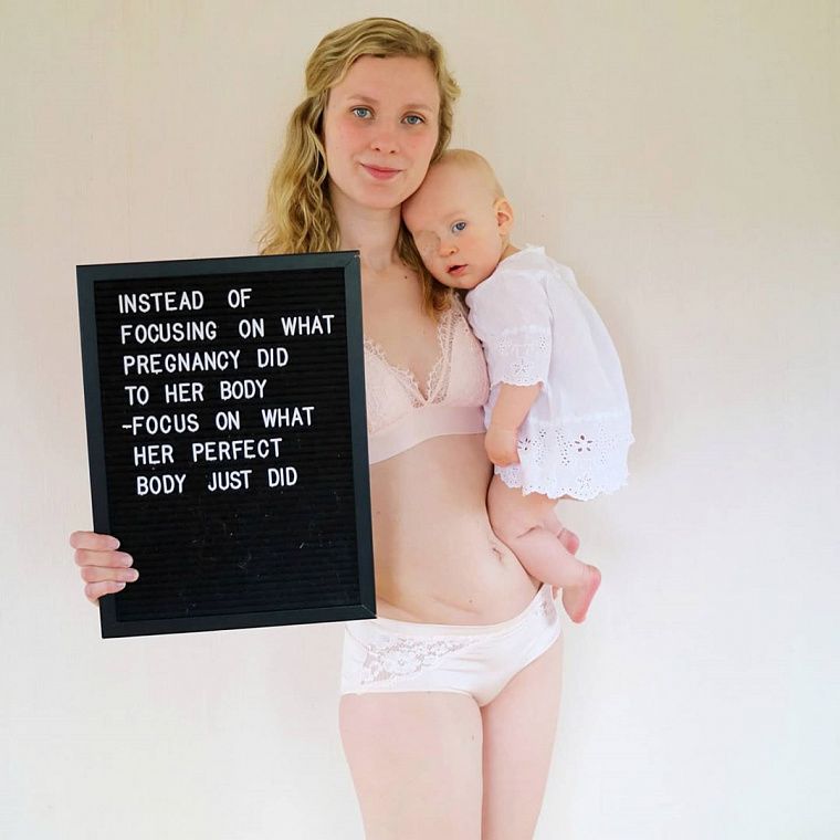 Вместо того, чтобы говорить о том, что беременность сделала с ее телом, лучше говорите о том, что ее идеальное тело только что сделало.