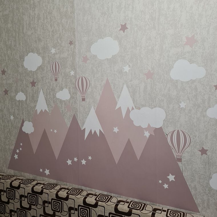 Я нашла на маркетплейсе подходящие по размеру наклейки с изображением гор, и заказала их, на всякий случай уточнив, не будет ли Ане страшно спать в горах.