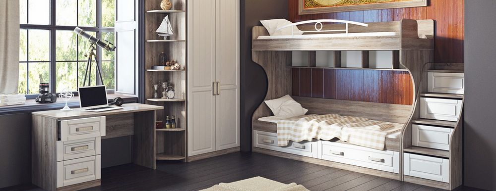 Я всегда мечтала о двухъярусной кровати. Но родители считали такую мебель небезопасной, и мы с сестрой обходились обычными кроватями. В 16 лет я попала в оздоровительный лагерь на море, и там моё желание осуществилось на целых 28 дней. Это был маленький островок уединения, где я любила утром до подъёма полежать и помечтать. Уже тогда я решила, что у меня будет двое малышей, а обязательным атрибутом детской станет двухэтажная кровать.