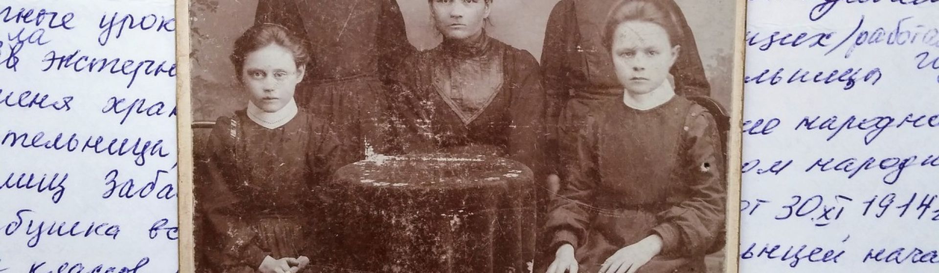Моя прабабушка на студийном фото сидит крайняя справа. Это фото сделано в начале прошлого века. Фотографии более 100 лет. Я бережно храню снимок и историю родного человека, который с помощью своего характера и знаний пробил себе дорогу в лучшую для него жизнь. Читайте также в нашем блоге:
