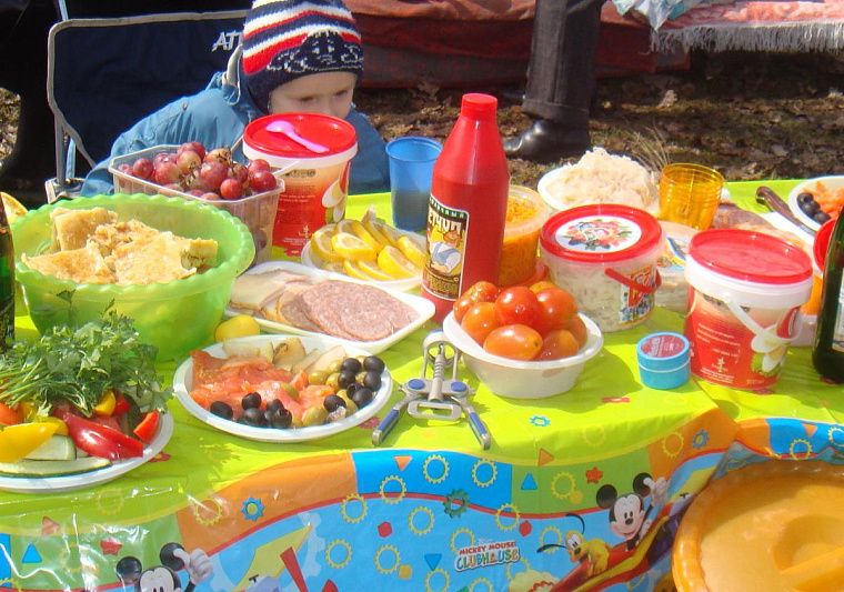 Моя старшая дочка родилась в конце апреля. Не всегда в это время погода радует. Но, когда прогноз обещает солнечную тёплую погоду, мы пользуемся случаем и стремимся отмечать праздник на природе. Конечно, хлопот не избежать, готовиться нужно, но на воздухе интереснее играть и свободы действий больше.