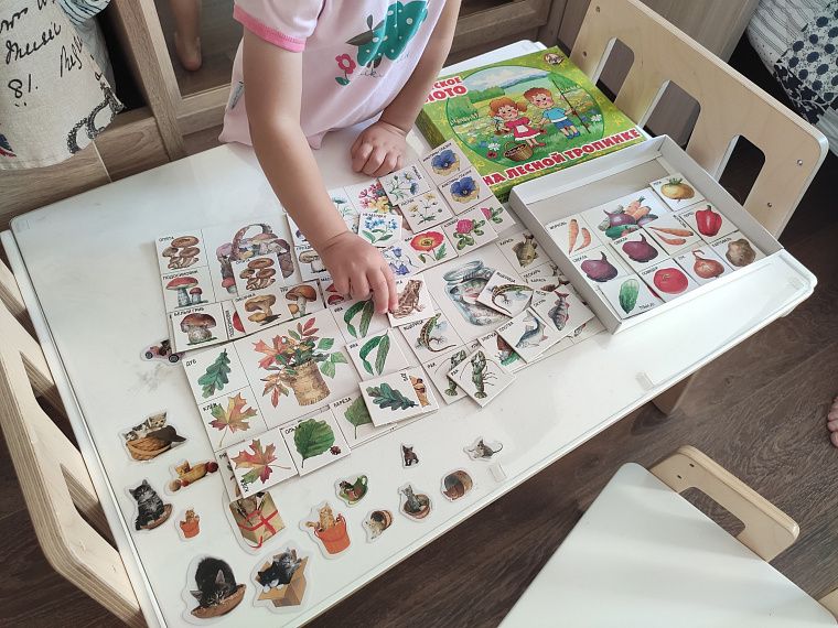 И вот пришло время, когда игры старшей дочки перешли по наследству к нашей младшей дочери. Как удивительно, кажется, что совсем недавно старшая дочь играла в это лото, а вот уже младшая с удовольствием ищет грибы и цветы. Именно такие мысли озвучил мой муж, глядя, как наша дочь с большим интересом разглядывает новую игру. Как же быстро течёт жизнь, одна дочь выросла, другая только подрастает. А игра осталась в отличном состоянии.