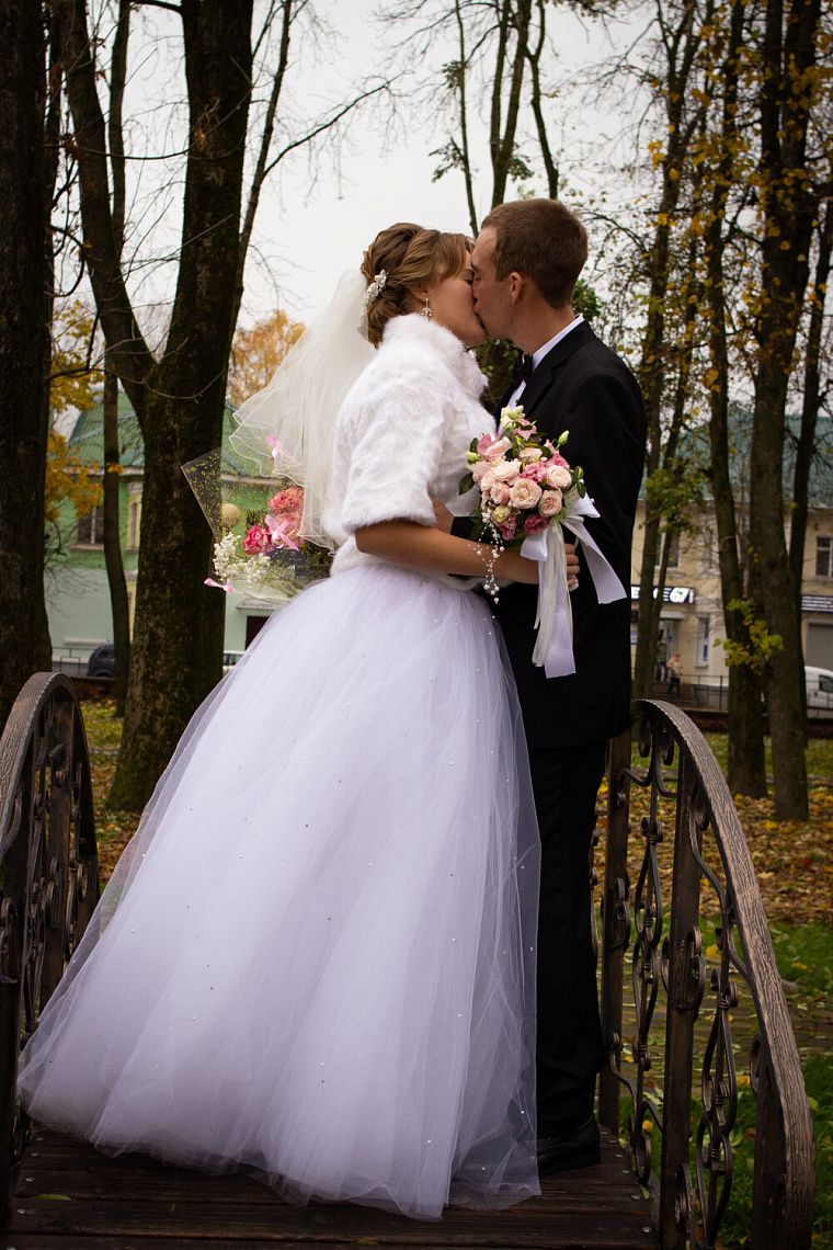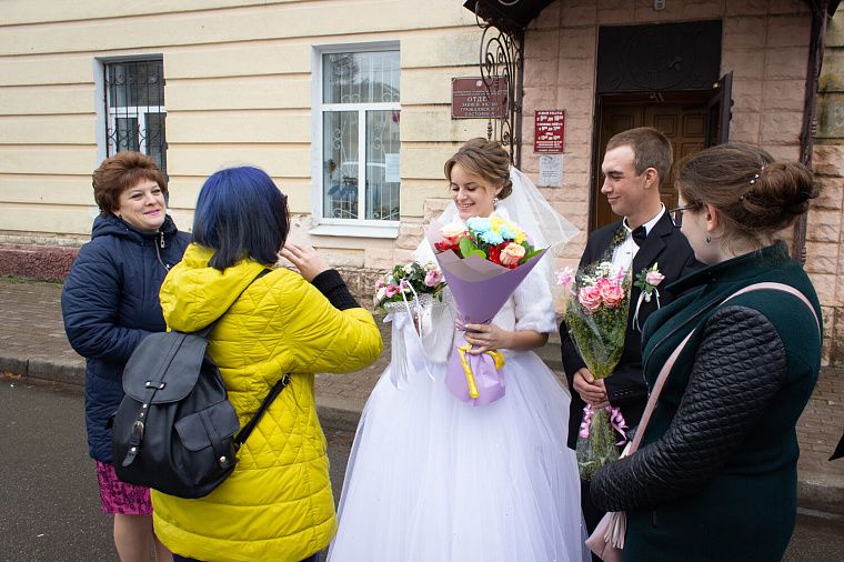 Через пол часа мы поехали в ЗАГС на роспись. У меня дрожали руки и колени от такого волнительного события. Сама регистрация мне понравилась, всё было красиво и торжественно. Так как свадьба проходила в год пандемии, то гости встречали нас уже на улице. Будущий муж так переволновался, что даже забыл меня вынести из ЗАГСа на руках. В тот момент я об этом даже не думала. После поздравлений мы пошли делать свадебные фото в городской парк. К этому времени тучи расступились, и засияло солнце.