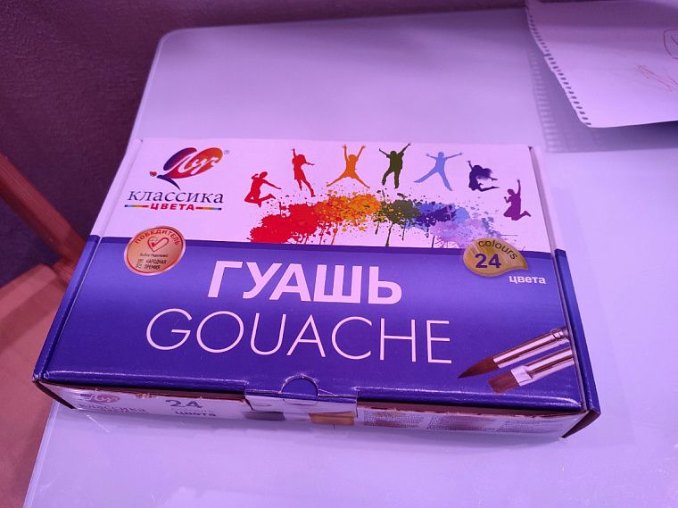 Теперь, когда продуман сюжет и выбраны материалы, надо приобрести в магазине гуашь и пару коробочек ватных палочек, а также листы для гуаши и кисточки. Работы надо сдать до 30 ноября. К сожалению, понравившихся мне кисточек и набора гуаши в наличии нет, а доставка будет позднее. Не люблю я откладывать всё на последний момент, придётся завтра выбирать в магазине из имеющихся в наличии вариантов.