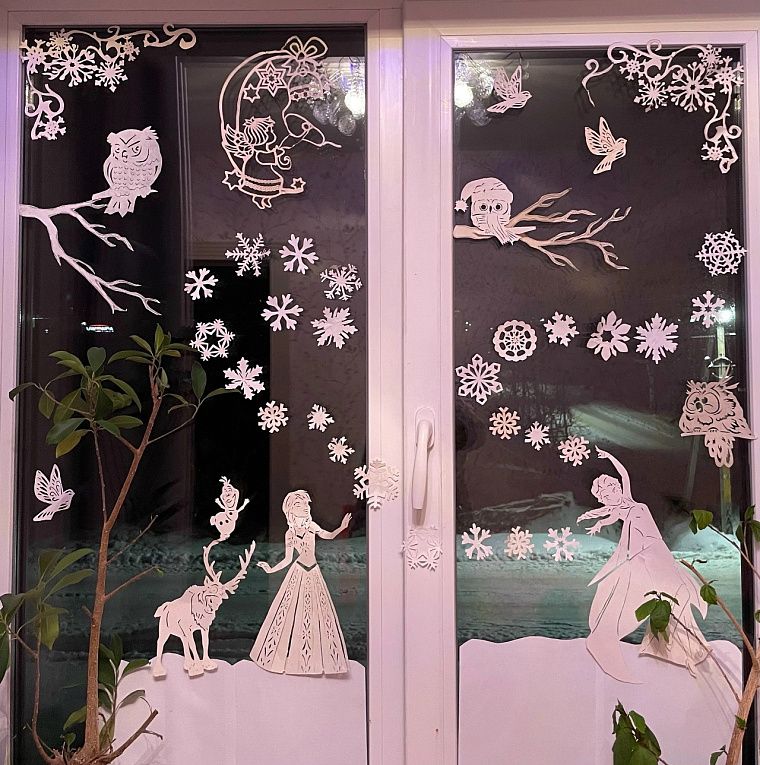 Превращение начинается с окон — это наши «глаза» в мир, и мы хотим, чтобы они сияли. У нас есть два волшебных способа их украсить: завораживающие ажурные вытынанки и морозные картины, нарисованные белой гуашью. К созданию вытынанок мы подходим как к настоящему ритуалу. Вечерами, за большим столом, мы достаём коробки с тонкой белой бумагой, распечатанными шаблонами и макетными ножами. Царит тишина, нарушаемая лишь шелестом бумаги и сосредоточенным дыханием.