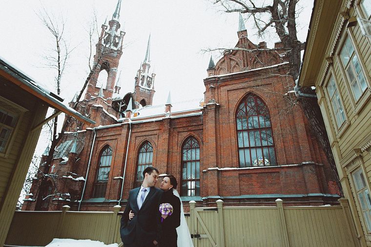 Во-первых, у нас была зимняя свадьба, сразу после новогодних праздников и выходных. Вроде бы ничего необычного, но всё-таки зима и особенно начало января не считаются сезоном свадеб. Мы с мужем женились в Самаре, а в этом городе бывают удивительные зимы. Из-за высокой влажности деревья полностью покрываются инеем и город превращается в снежную сказку – именно о такой погоде я мечтала. Сказки, увы, не случилось – 11 января на удивление было мокро, дождливо и слякотно. Но мы не расстроились. Гуляли по городу немного, а локации для фотосессий заранее выбрали в уютных местах под крышей – музее, зимнем саду железнодорожного вокзала и в церкви, где венчались.