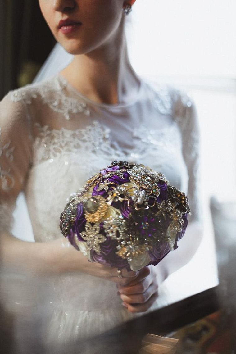 Третий нюанс, который привлёк внимание гостей, – это мой букет. Он был выполнен из атласных цветов, украшенных брошками. Так как у нас была зимняя свадьба, я долго думала, какой букет выбрать. И в один из дней мне на глаза попалась страничка рукодельницы, которая на заказ делала брошь-букеты. Я сразу поняла, что это мой вариант. Конечно, сейчас это не выглядит необычным – в наши дни мало чем можно удивить. Но десять лет назад это было чем-то незаурядным.
