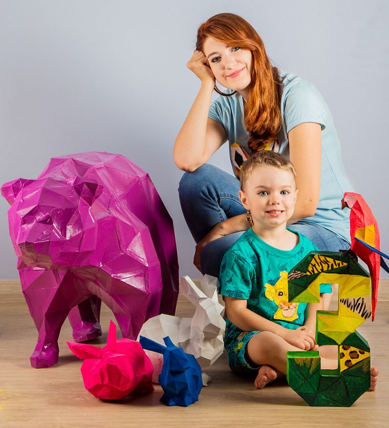 На третий день рождения сына я освоила технику пепакура – так называется бумажное моделирование. Получаются объёмные фигуры из картона. Так как Женя тогда увлекался животными, именно их я и взяла за осиновую тему. Я сделала и покрасила фигурки из плотного картона и цифру. Также я придумала оформить рисунки на листах бумаги и просто пришить их к футболкам. Те, кто знаком с ценами на печать изображений на одежде, поймут, что этот способ помогает здорово сэкономить. Мои маленькие цифры стали пользоваться успехом среди знакомых, так как я всегда могла подготовить их под любую тематику праздника. Постепенно оформление фотозон вошло в мою жизнь.