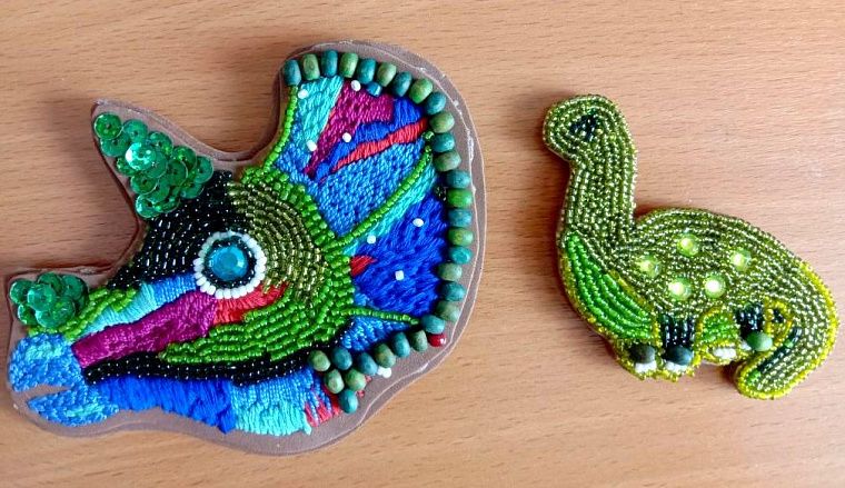 В этот день рождения я также освоила очередную новую для меня технику – изготовление брошей из бисера. С этим материалом я знакома уже давно, а вот такие украшения делала впервые. С одеждой для праздника выручили