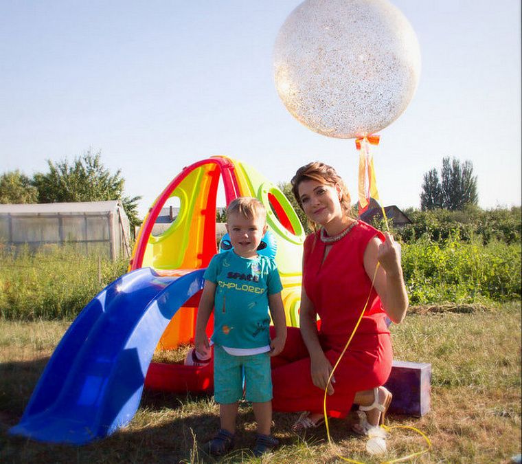 Когда я ушла в положенный декретный отпуск, вначале заниматься чем-то, помимо семьи, казалось просто невозможным. Но время шло, и вот мы уже готовились к первому дню рождения сына Евгения. Захотелось немного поэкспериментировать и сделать что-нибудь в определённом стиле. Выбор пал на морскую тематику, которая тогда как раз была у всех на слуху. Нашла в Интернете схему корабликов из бумаги, которые многие из нас в детстве пускали по лужам. Сделала их очень много из старых журнальных страниц и оформила в виде вертикальных нитей. Одежду нам подобрала в полоску и попросила гостей выбирать сине-голубую гамму в своих вещах.