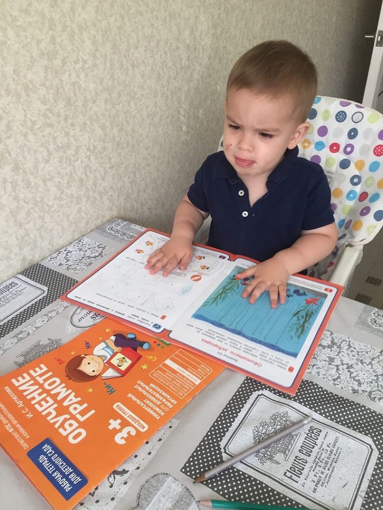 Прописи – это отдельная любовь. Тимур сам их достаёт и начинает выводить линии максимально ровно. Ещё мы вместе обводим и раскрашиваем картинки. Я проговариваю всё, что вижу и что надо сделать. Изначально это занимало не больше 5 минут. Сейчас уже может и полчаса заниматься. Насильно не заставляю, чтобы не отбить интерес.