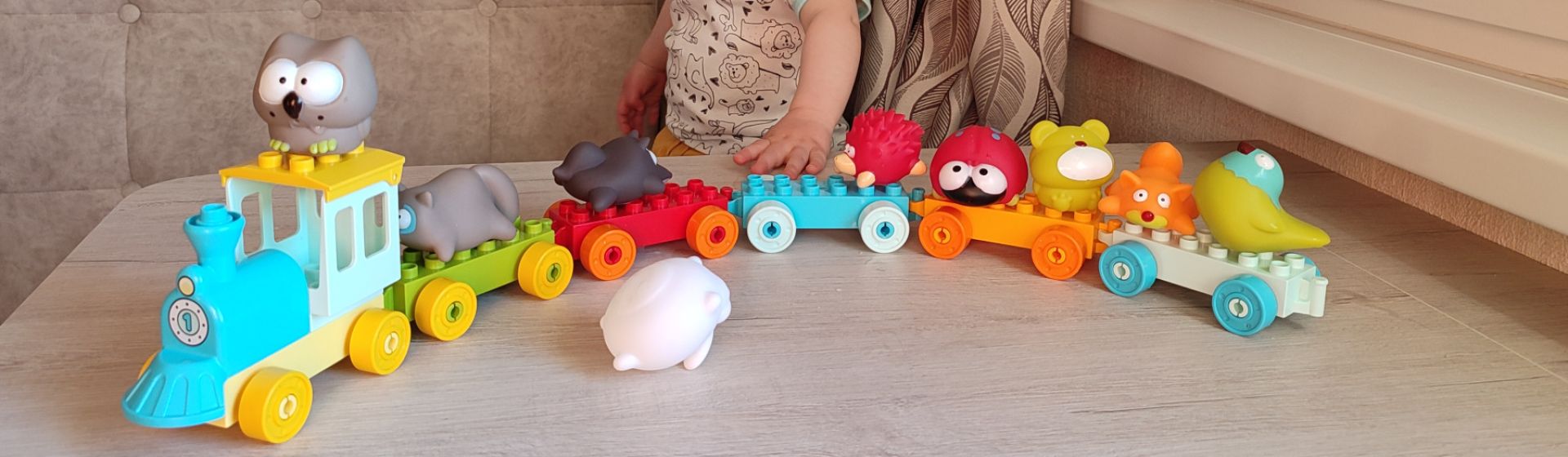 Игрушки изготовлены с соблюдением всех норм безопасности, нет неприятного запаха. Вернее, они просто не пахнут. В комплекте: волк, лиса, ёжик, медведь, сова, божья коровка, которую муж всё время называет "колорадским жуком", птичка, заяц и загадочный зверёк – или кошка или енот, мы не смогли отгадать. Дочь с удовольствием играет с ними и в воде, и на суше, катая их на тележках от конструктора. Строит им домики из кубиков и с удовольствием кормит из ложки, когда сама кушает. Их легко вымыть и высушить, и можно снова играть.