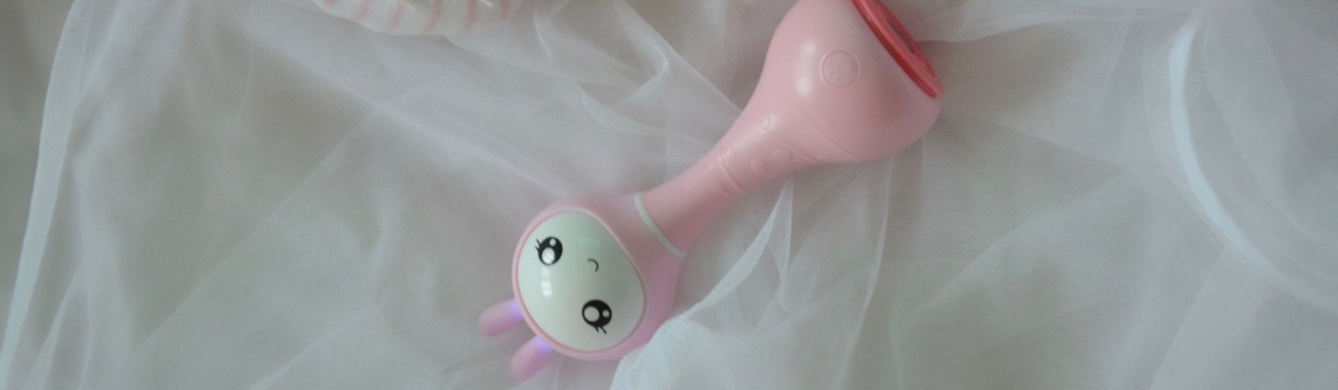 Погремушки – наши первые игрушки. После игр с малышкой, уже через две недели она отлично научилась ловить взгляд. Нужно взять любую игрушку (у нас был розовый слоник и пчёлка-шуршалка) и двигать ею, водя в разные стороны. При этом спрашивали у дочки: «Где же слоник? Где же пчёлка? Алисия, посмотри, вот где!»
