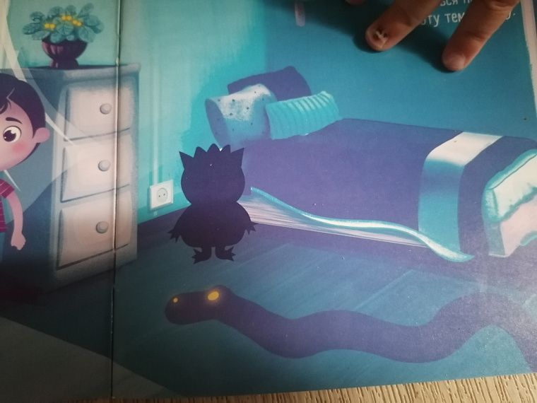 Дочку мы никогда не пугали темнотой, всякими барабашками или монстрами, которые прячутся под кроватью. Но страх перед тёмной комнатой или улицей у неё присутствовал достаточно долго. До недавнего времени ребёнок засыпал только при свете ночника или при мерцании телевизора. Только последние несколько недель дочка может спать при выключенном свете. Считаю, в победе со страхом темноты нам частично помогла приобретенная пару месяцев назад книга.