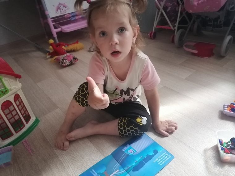 Звёздочки на небе, луна, полоса от самолёта – это то, что можно наблюдать, когда на улице темно. То, что мы рассматриваем в книге, дочь уже ищет и на улице. Несколько раз специально выходили с ней гулять, когда уже темнело. Страх перед сумерками постепенно пропал. И если раньше дочка только спрашивала: «Я же с мамой, да?», то теперь, крепко обняв своими ручками, восклицает: «Мне не страшно! Я же с мамой!»