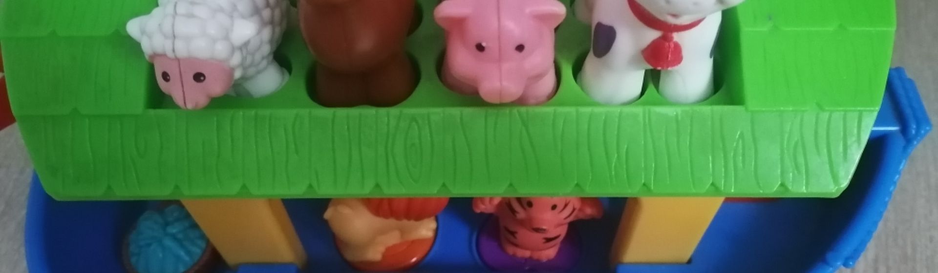 За целый год у дочки интерес к ковчегу не угас, играет с ним почти каждый день. Несколько раз она пыталась унести фигурки животных с собой в детский сад, хорошо, что там запрещено приносить мелкие предметы. Именно с помощью животных ковчега дочка научилась звукоподражанию.