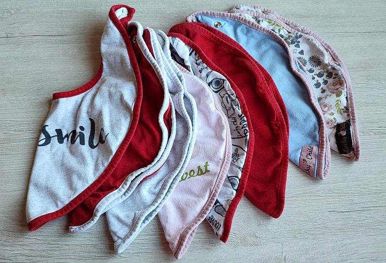 И тогда я воспользовалась слюнявчиком от Lucky Child. Он идеально сел, не торчал больше плеч и не вызывал желания теребить. Да, слюнявчики промокают, если сильно лить на них водой и едой. Пока я сама кормила дочку, они меня спасали. Каша остаётся на нём, и его дочь не пытается сорвать. Если бы в данном слюнявчике был бы впитывающий слой – он был бы бесценен.
