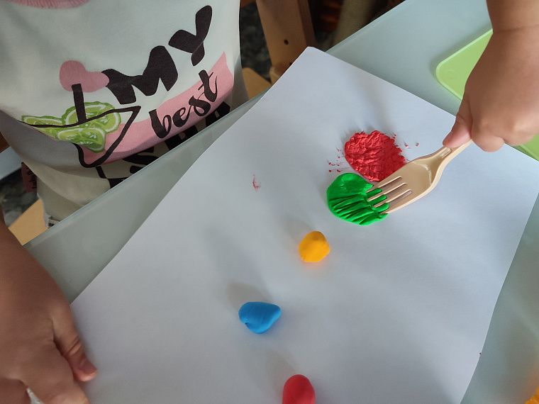 Сейчас в свободном доступе у дочери только карандаши и фломастеры, а краски и пластилин убираются на верх, и достаются лишь под присмотром мамы или папы. Я регулярно смотрю, что предлагают творить педагоги или другие творческие мамы, и с удовольствием повторяю эти занятия со своим ребёнком.