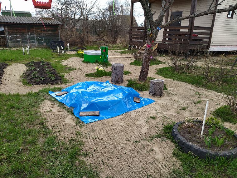 Конечно, мне хотелось, чтобы песочницу сделали наши мужчины, ведь от строительства дома осталось большое количество неплохих досок.