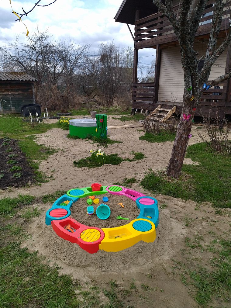 Ярешила купить на дачу песочницу для маленького ребёнка, ведь играть с песком очень полезно. В песочнице ребёнок развивает мелкую моторику, когда пересыпает песок в руках; глазомер, когда наполняет формочки и ведерочки песком. Здесь он приобретает первые навыки общения с другими детьми. В песочнице начинают развиваться его творческие способности.