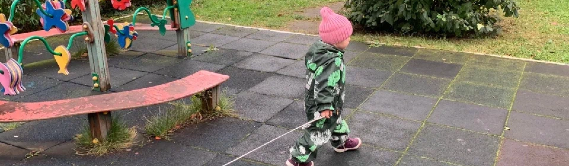 Дочка очень любит катать за верёвочку утку на колёсиках. Также ей нравится прицепить игрушку к рулю её игрушечного мотоцикла и ехать вместе с уточкой.