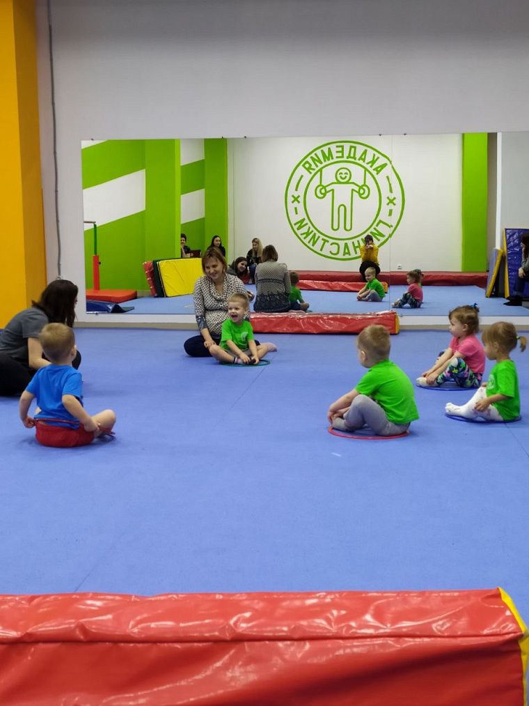 Конечно же, двухлеток не учили упражнениям на брусьях, ходить по бревну и делать сложные элементы. В нашем случае это выглядело так: собиралась группа двухлеток, и они по команде тренера выполняли какие-то задания. Больше походило на общую физическую подготовку с небольшими элементами, напоминающими о том, что всё-таки мы на секции спортивной гимнастики. Например, малышей учили кувыркаться на мате. Они пробовали подтягиваться или качать пресс с помощью тренера. Висели на кольцах. Учились выполнять различные прыжки. Но большую часть занятия делали разминку, бегали с обручем, мячом или другим спортивным инвентарём, играли в командные игры.