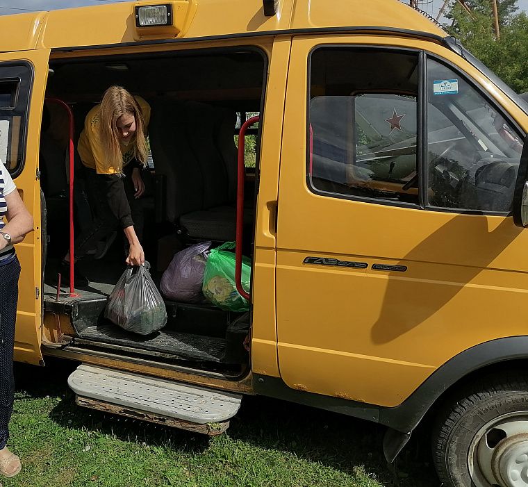 Районной администрацией была выделена машина для перевозки корма в приют. Дочка и другие ребята-волонтёры погрузили пакеты и мешки в машину и отвезли всё это в приют. Эта поездка - отдельная история.