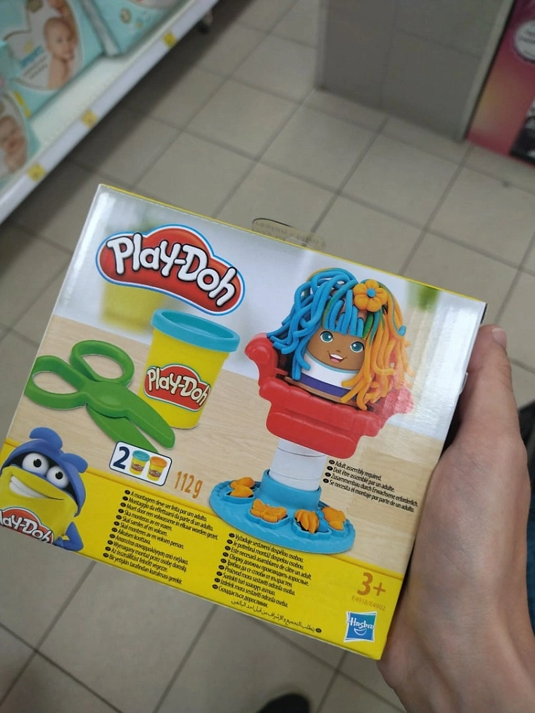 С этим пластилином я познакомилась задолго до рождения сына, поэтому мысль купить Play-Doh меня не покидала. Ещё не успел Миша как следует сесть, а у нас уже появилась огромная коробка с 36 баночками. В 2020 году её можно было урвать на китайском сайте за почти 600₽. В то время на одном из мамских чатов этим пластилином у нас закупались все.