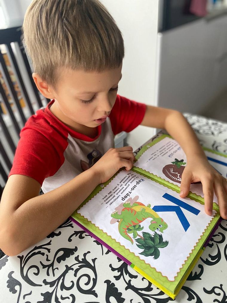 Процесс запустился. Сейчас ребёнку почти 7 лет, и он медленно, с ошибками, но читает. И конечно же у него есть стимул – начать самому читать книги для динозавров. Мы купили большие, красивые новые книги и сын пытается сам их читать, потому что диноазбуку уже освоил.