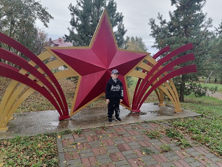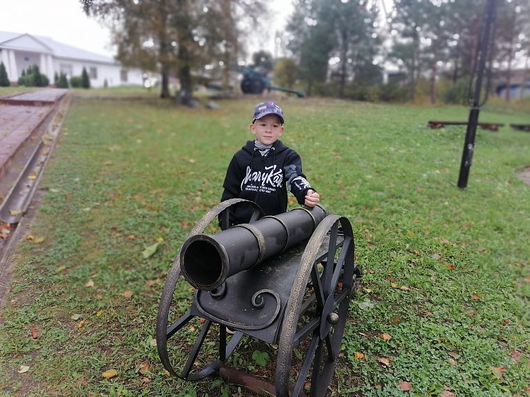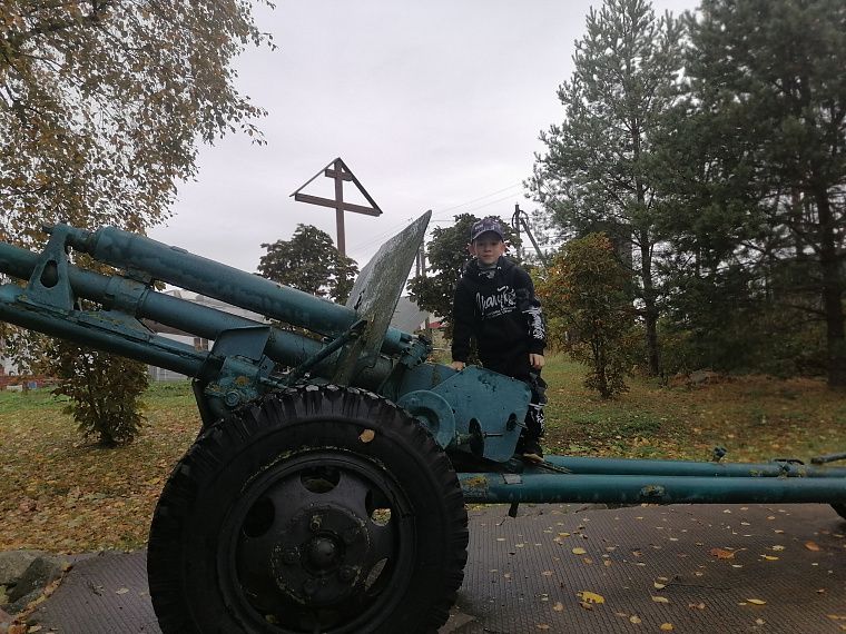 Я рассказала ему о знаменитом лётчике, о том, что в его честь названы улица в посёлке и одна из школ. Ребёнок был в восторге от самолёта, ведь до этого видел его только издалека. Сфотографировались и возле артиллерийской пушки. Она была установлена относительно недавно и тоже привлекла внимание ребёнка. В познаниях о принципе действия такого оружия я не сильна, поэтому вместе почитали о нём в интернете.
