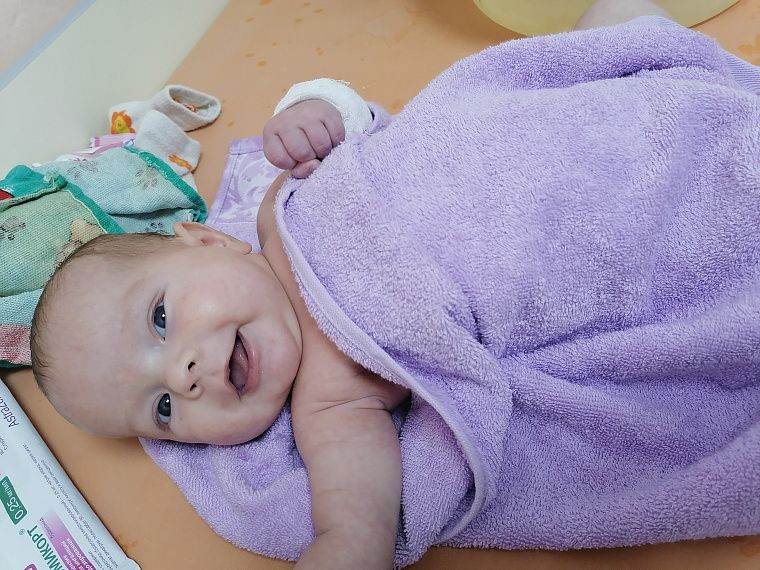 Спустя несколько дней пребывания в больнице дочка, наконец, снова улыбается.