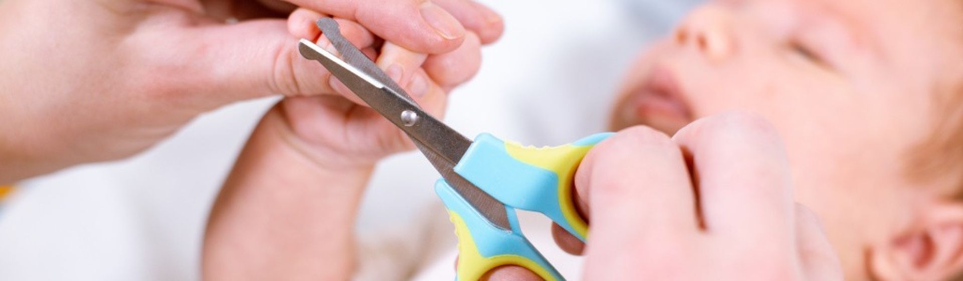 - Держите пальчик ребенка так, чтобы кожа была отодвинута от края ногтя.